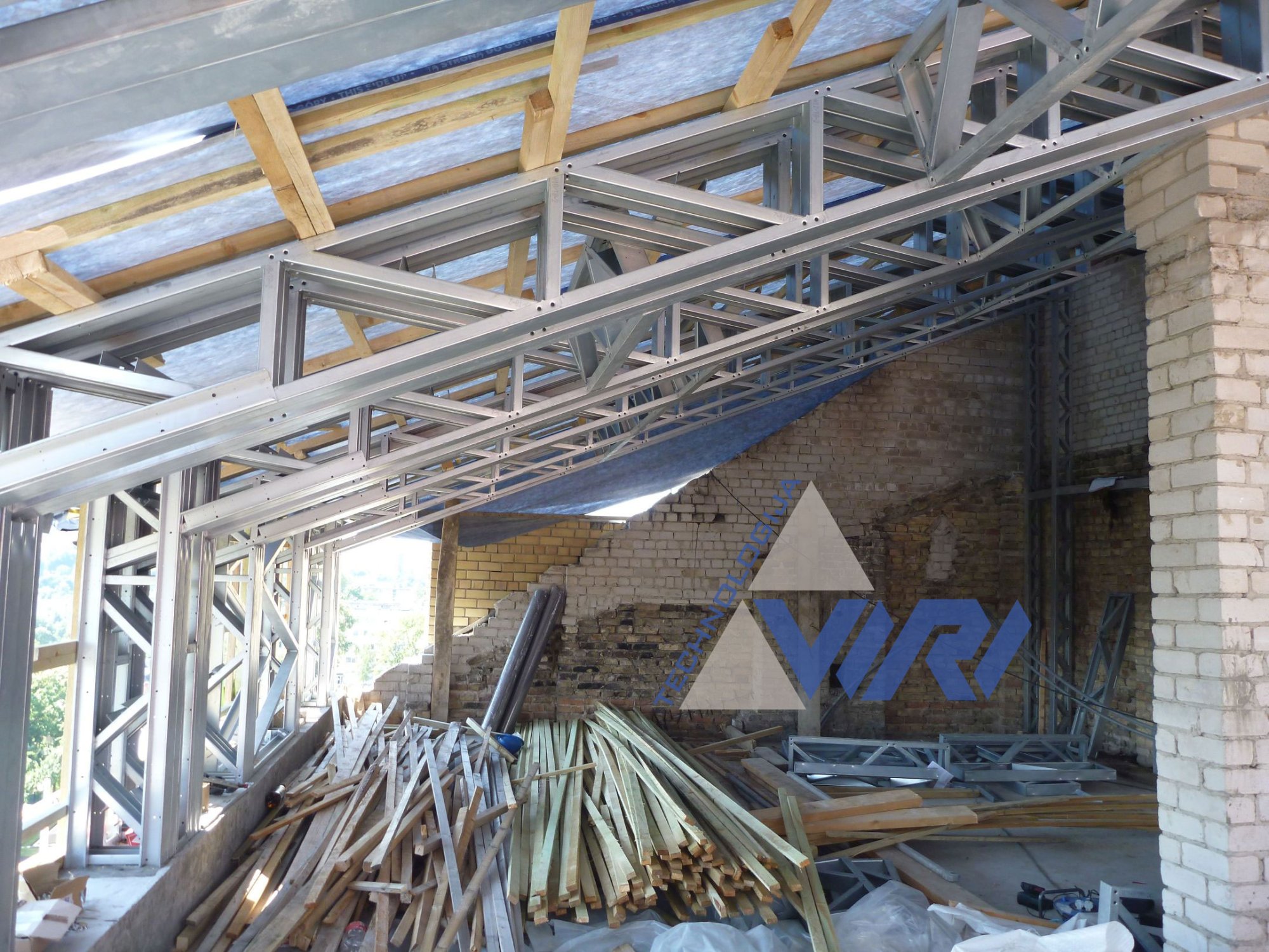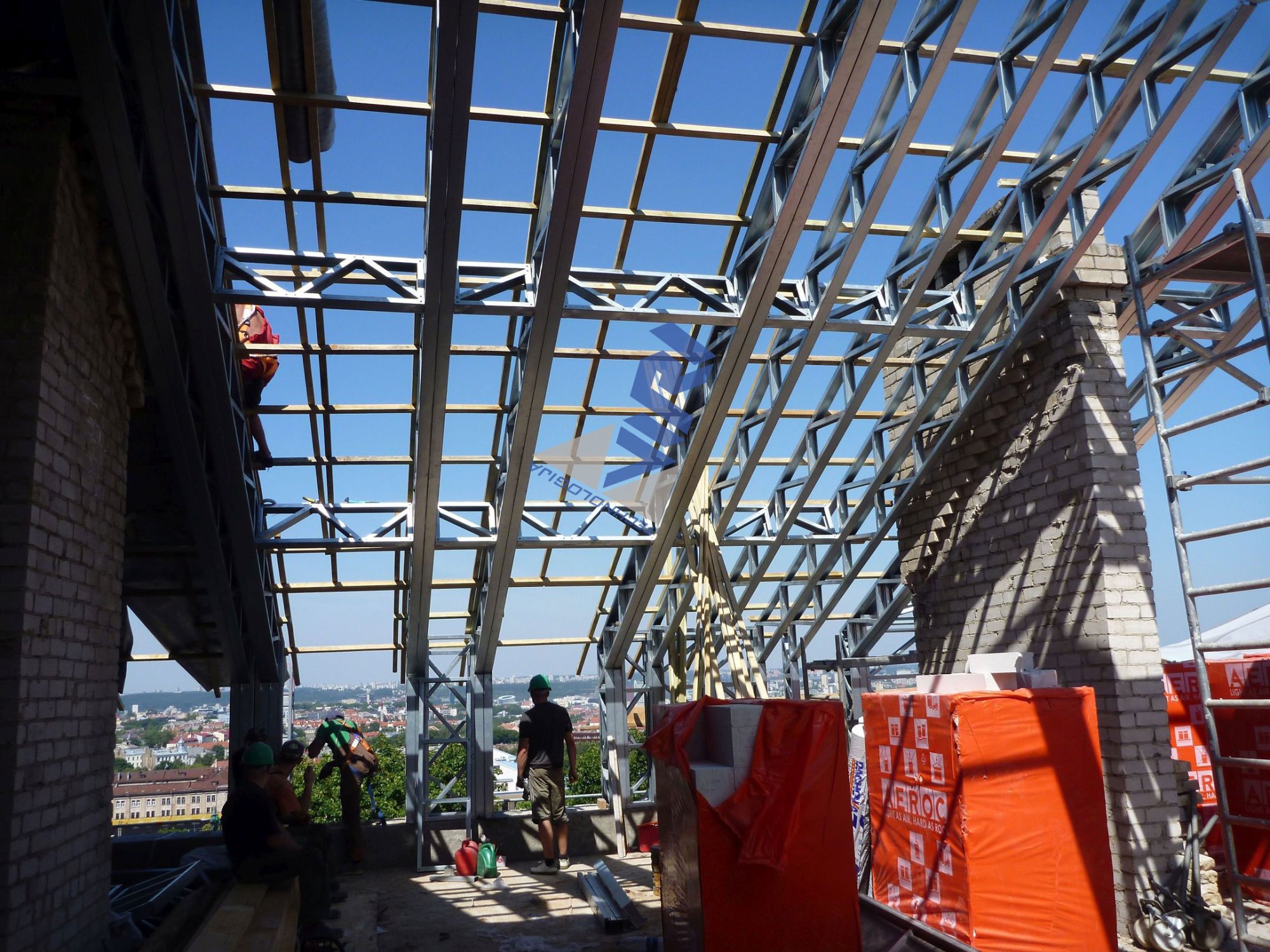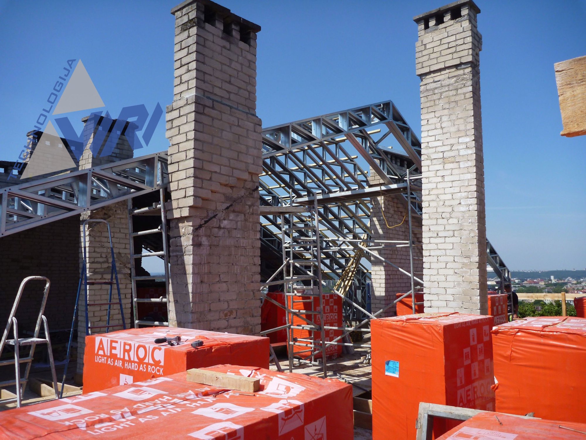 Daugiabučio namo stogo rekonstrukcija (renovacija) Vilniuje, Lietuva.