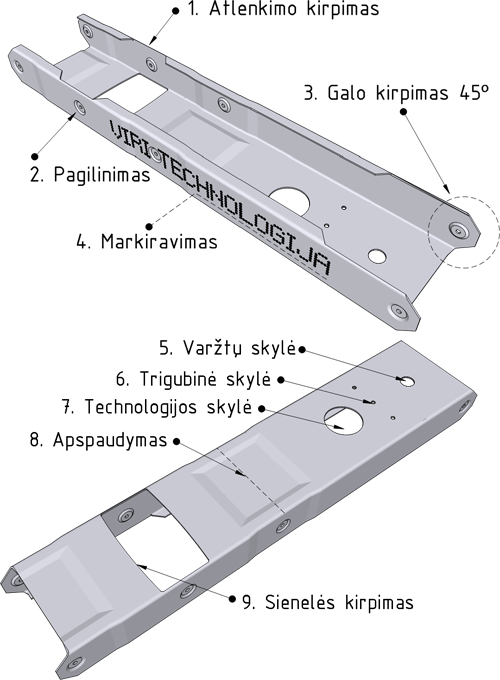 - Atlenkimo kirpimas. Ši operacija leidžia sujungti profilius tiesiogiai arba taikant kiauryminio sujungimo būdą.