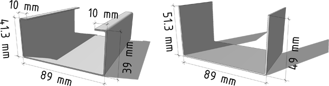 Mūsų gamino profilio skerspjūvis – asimetriškas. Pavaizduoto iš kairės profilio jungė aukščiau už dešiniojo profilio jungę vienu metalo storiu. Tokia asimetrija leidžia sudėti vieną profilį į kitą suformuojant „dėžutę“ ir gaminti sustiprintus profilius (sijas).