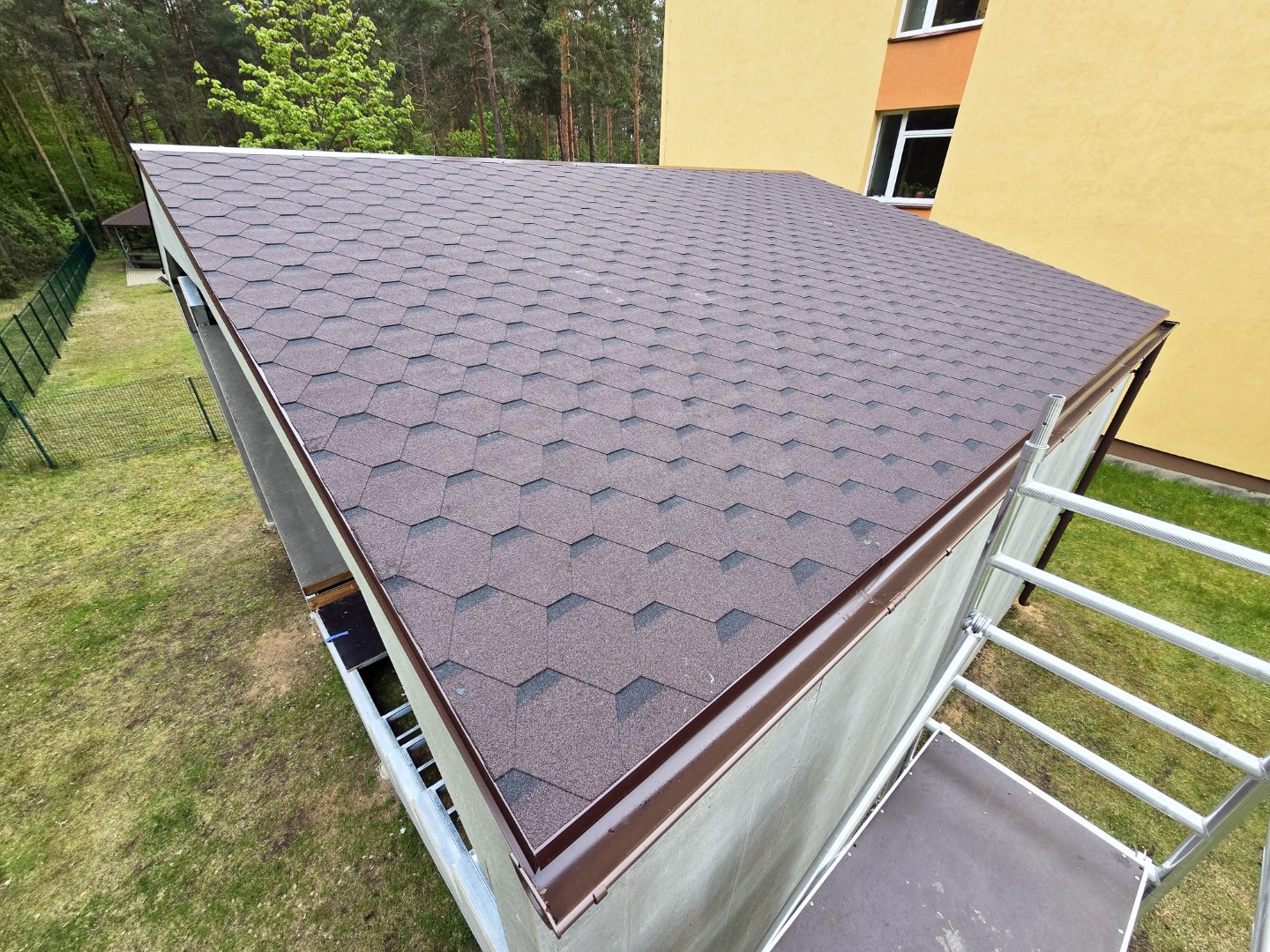 - Lietaus nuvedimo sistema – integruota sistema, užtikrinanti efektyvų vandens nutekėjimą nuo stogo, apsaugant konstrukciją nuo drėgmės ir pelėsio.