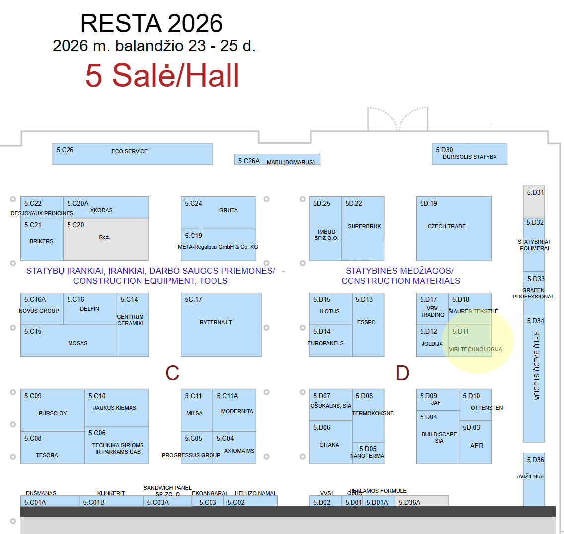Jau balandžio 23-25 dienomis kviečiame apsilankyti didžiausioje statybų ir renovacijos parodoje RESTA 2026 Vilniuje!